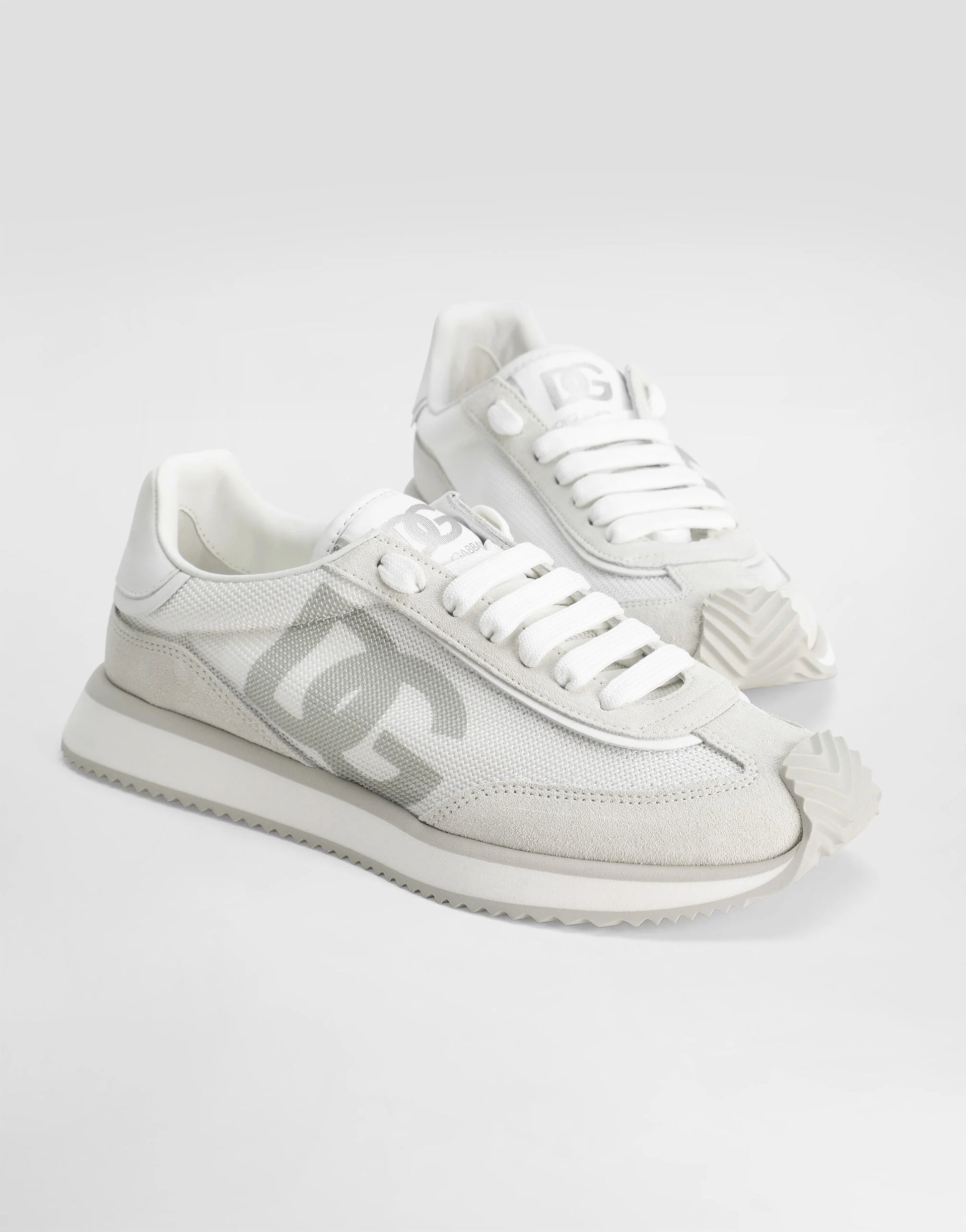 Future-orientated lightness. The new DG CUSHION sneakers feature a soft two-tone suede upper that enhances the crossover DG logo and contrasting print on the mesh side. The light and fitted rubber sole ensures constant comfort, without forgetting about style. The jacquard label finishes off the look, adding a touch of unmistakable elegance.